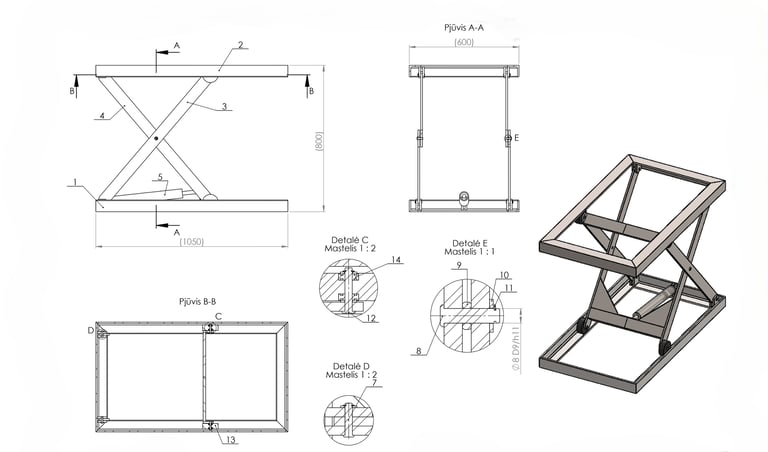 Hydraulic Scissor Lift Design (150 kg Load, 800 mm Lift Height)