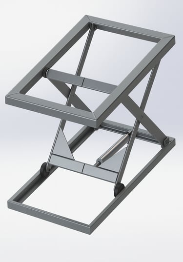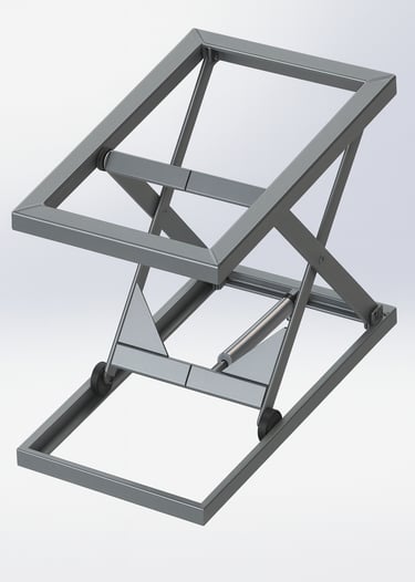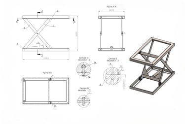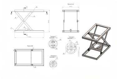 Complete 3D design of a hydraulic scissor lift built to raise a 150 kg load up to 800 mm height.