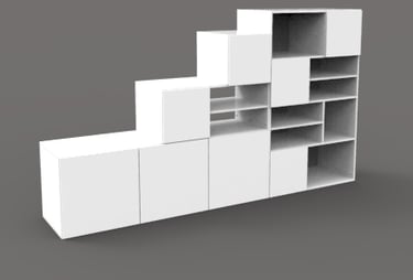 Designed a functional and space-efficient closet to fit within a niche under the stairs. The goal was to create an organized storage solution where all items appear neat and easily accessible.